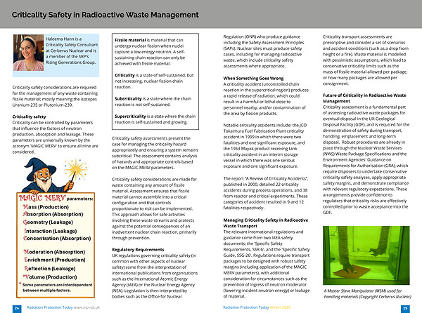 Haleema Hann is a Criticality Safety Consultant at Cerberus Nuclear and is a member of the SRP ' s Rising Generations Group.